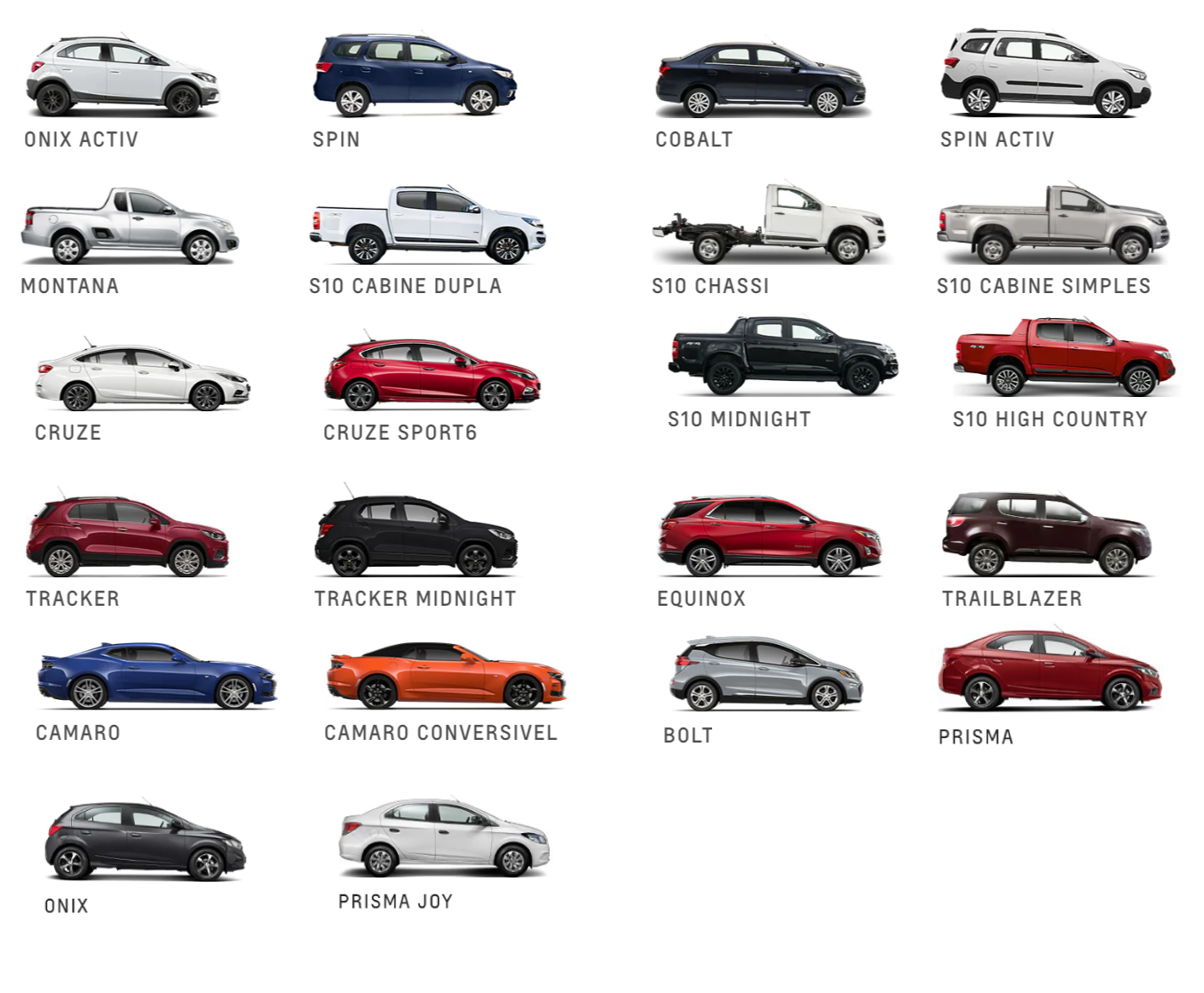 O Grupo Corretora oferece seguros para toda linha CHEVROLET (CLASSIC, ONIX, PRISMA, PRISMA JOY, COBALT, SPIN, SPIN ACTIV, CRUZE, MONTANA, S10, TRACKER, CAPTIVA, TRAILBLAZER, CAMARO, TRACKER, EQUINOX, BOLT), com as melhores condições do mercado e de forma simples, rápida e sem burocracia. Clique no botão abaixo e receba sua cotação online!